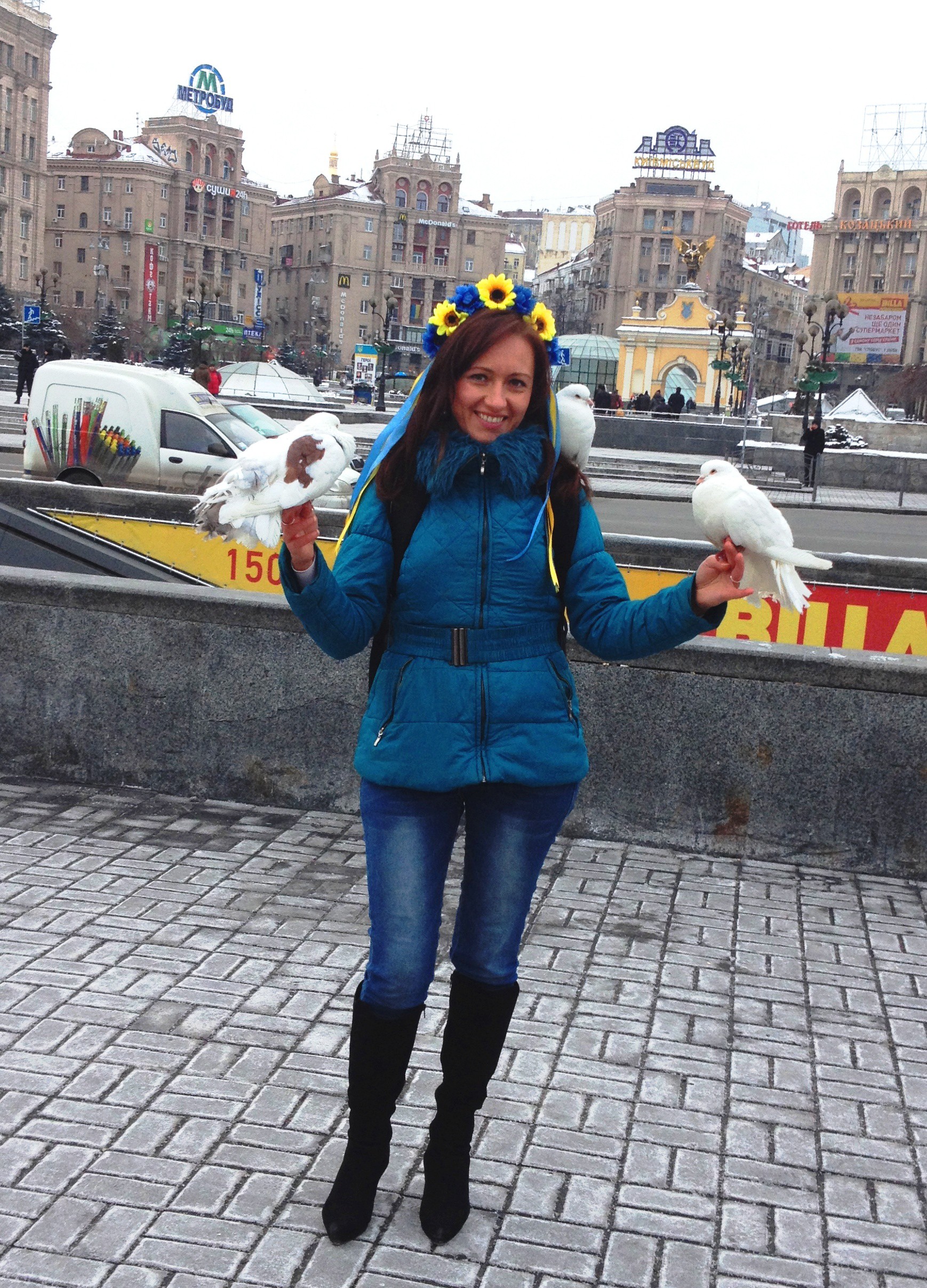 Необычное ощущение на моих плечах прервало мою молитву. Поворачиваюсь… К моему удивлению, на мое плечо сел красивый белый голубь. Через несколько секунд, к первому голубю, на мои ладони подсели еще двое. Местные студенты приручили этих голубей и теперь их излюбленным местом стал Майдан Независимости. «Мир оставляю вам, мир Мой даю вам», слышу слова Иисуса внутри себя… «Не так, как мир дает, Я даю вам. Да не смущается сердце ваше и да не устрашается… Веруйте в Бога, и в Меня веруйте». Украина, ты слышишь? Прими слова Спасителя Своего! Принять Его значит принять мир, который так нужен тебе сейчас!